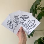 A6 sized prints that double as postcards! Four different mushroom designs included.